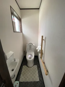 さらに手すりを設置したことで、立ち座りの動作も安心。将来を見据えたやさしいトイレ空間になっています。